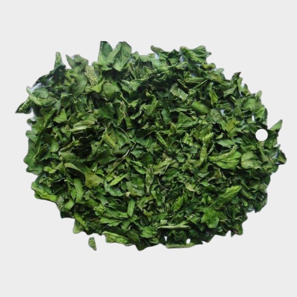 Lightly dried spinach retaining its nutritional value. Ideal for soups, noodles, and health food blends.